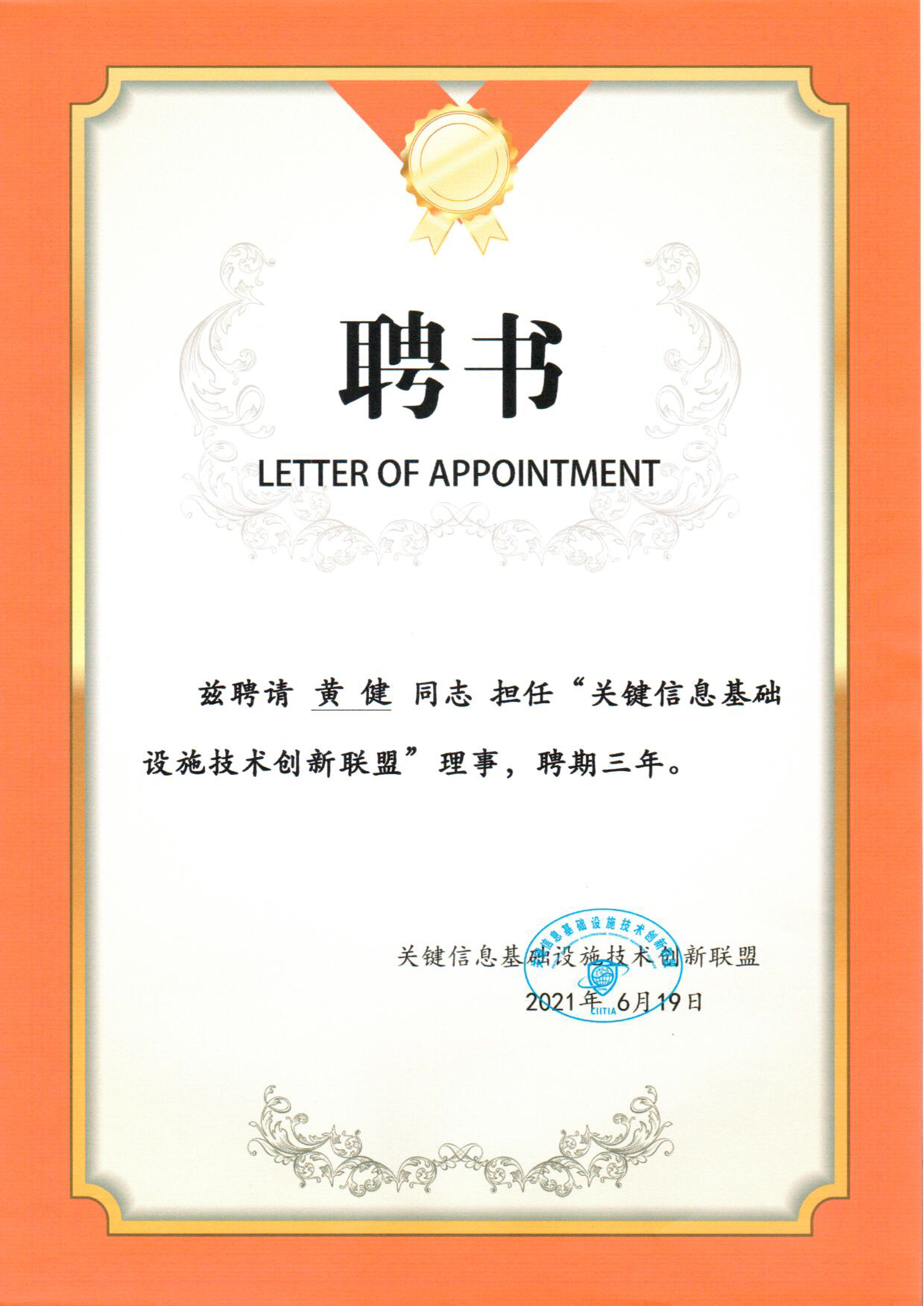 云涌科技副總裁黃健先生被聘請擔任“關鍵信息基礎設施技術創新聯盟”理事。