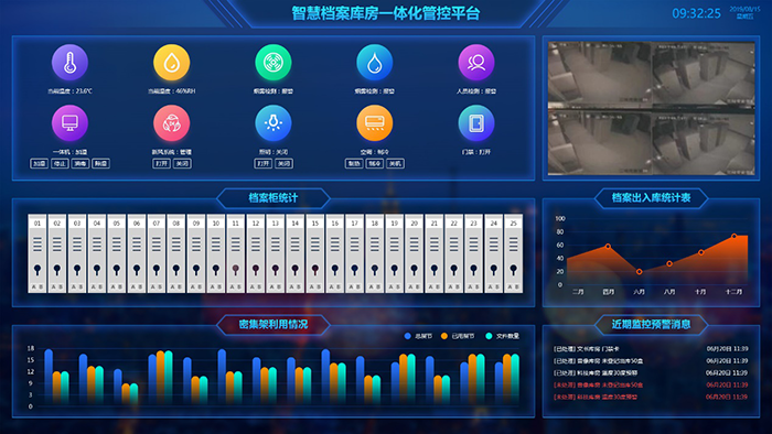 引入智慧檔案庫房一體化管控平臺,管理人員只需一套軟件即可有效管理庫房,庫房內設備可以有效聯動,建設過程簡單有序,提高日常管理效率,降低整體管理成本,售后服務只需對接一家供應商,提高售后服務質量。
