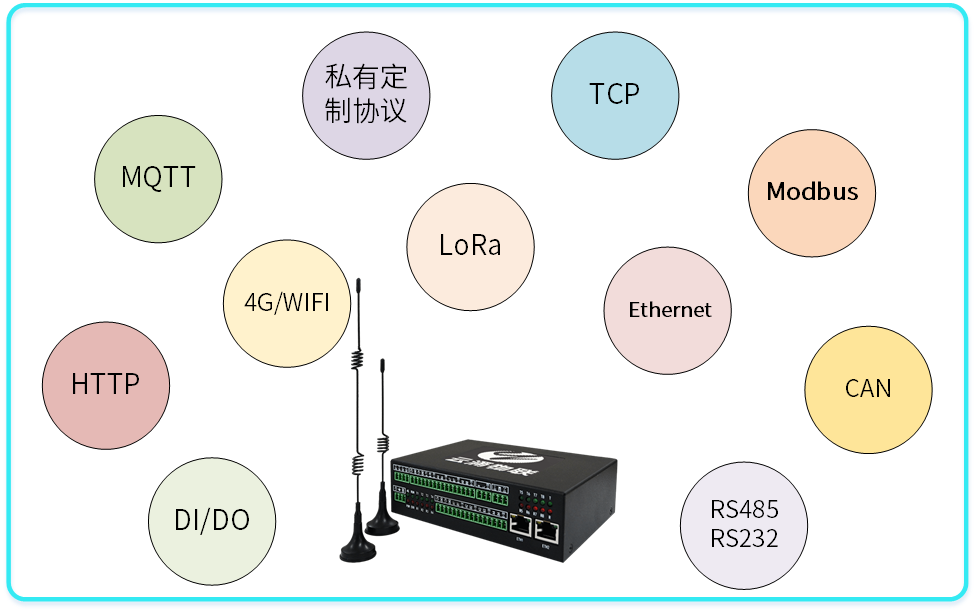 支持Linux 4.1.15操作系統,支持協議定制和工業系統對接,接口全開放,可進行二次開發,集成了Ethernet、 4G/WiFi、LoRa、RS485/RS232、CAN、DI/DO等功能接口,支持 -25℃~+85℃工作溫度;