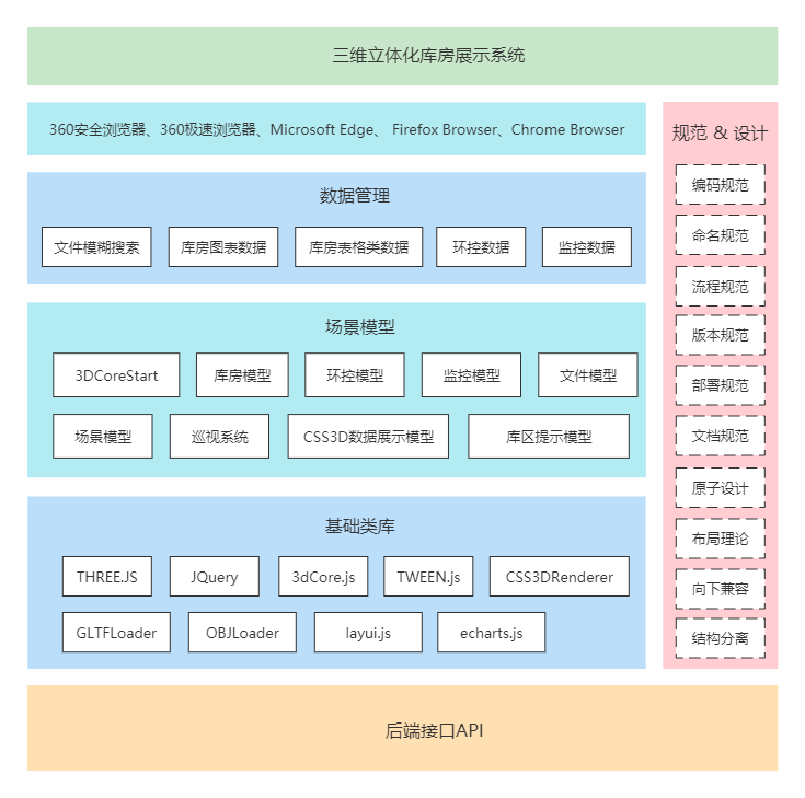 - 通過三維數(shù)字化庫房,可實(shí)現(xiàn)業(yè)務(wù)數(shù)據(jù)查詢,遠(yuǎn)程檔案設(shè)備操作,全景環(huán)控系統(tǒng)設(shè)置,安全態(tài)勢感知上報(bào)等功能,助力用戶數(shù)字化轉(zhuǎn)型。
