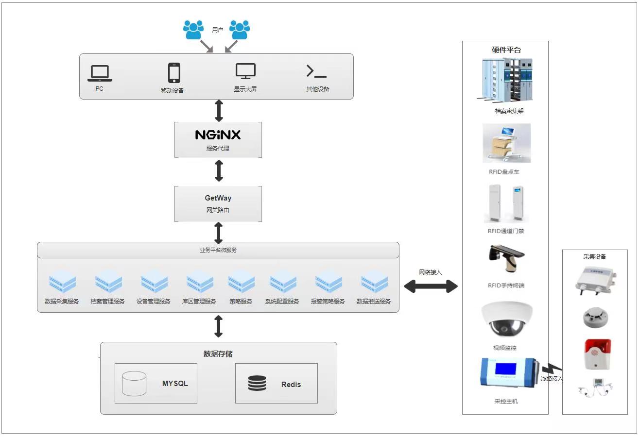 ? ? ? 智慧庫房數(shù)字一體化管控平臺是以物聯(lián)網(wǎng)技術為支撐,將實體檔案管理、檔案存儲設備管理、檔案庫房環(huán)境管理、檔案庫房安全防范管理等多種功能集中于一體的管理系統(tǒng),它為實現(xiàn)檔案管理的標準化、規(guī)范化、科學化、效能化提供了一套有力的工具,大幅提高檔案管理效率,保證檔案的安全與完整。