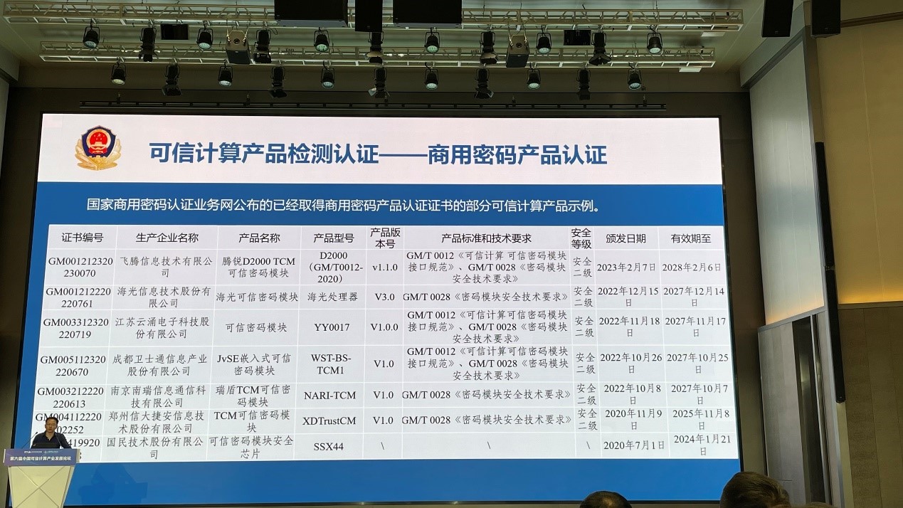 云涌科技副總裁高淵先生全程參與本次論壇會議,并作為企業(yè)代表上臺領(lǐng)獎。云涌可信密碼模塊YY0017作為已取得商用密碼產(chǎn)品認證證書的可信計算產(chǎn)品示例在會議現(xiàn)場被提及,并獲得了現(xiàn)場領(lǐng)導(dǎo)和專家們的一致肯定。