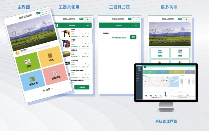 智能工器具管理系統是針對供電所普通工器具和安全類工器具管理的一整套解決方案。根據存儲工具的環境要求不同,設置不同的存儲柜和管理方式。系統采用RFID標簽對工具進行識別和管理,通過智能工具柜的標簽識別和智能控制,完成工具使用過程中的自助借還、領用引導、錯誤提醒以及自動盤點等功能。