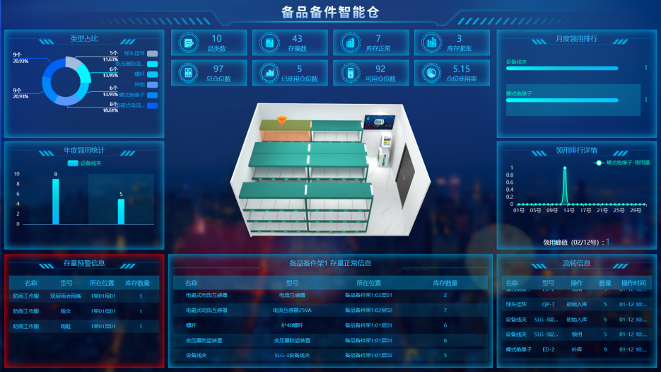 智能稱重貨柜:用于管理高價值備品備件,通過顯示模塊和定位指引,實現自助領用管理和信息同步管理。