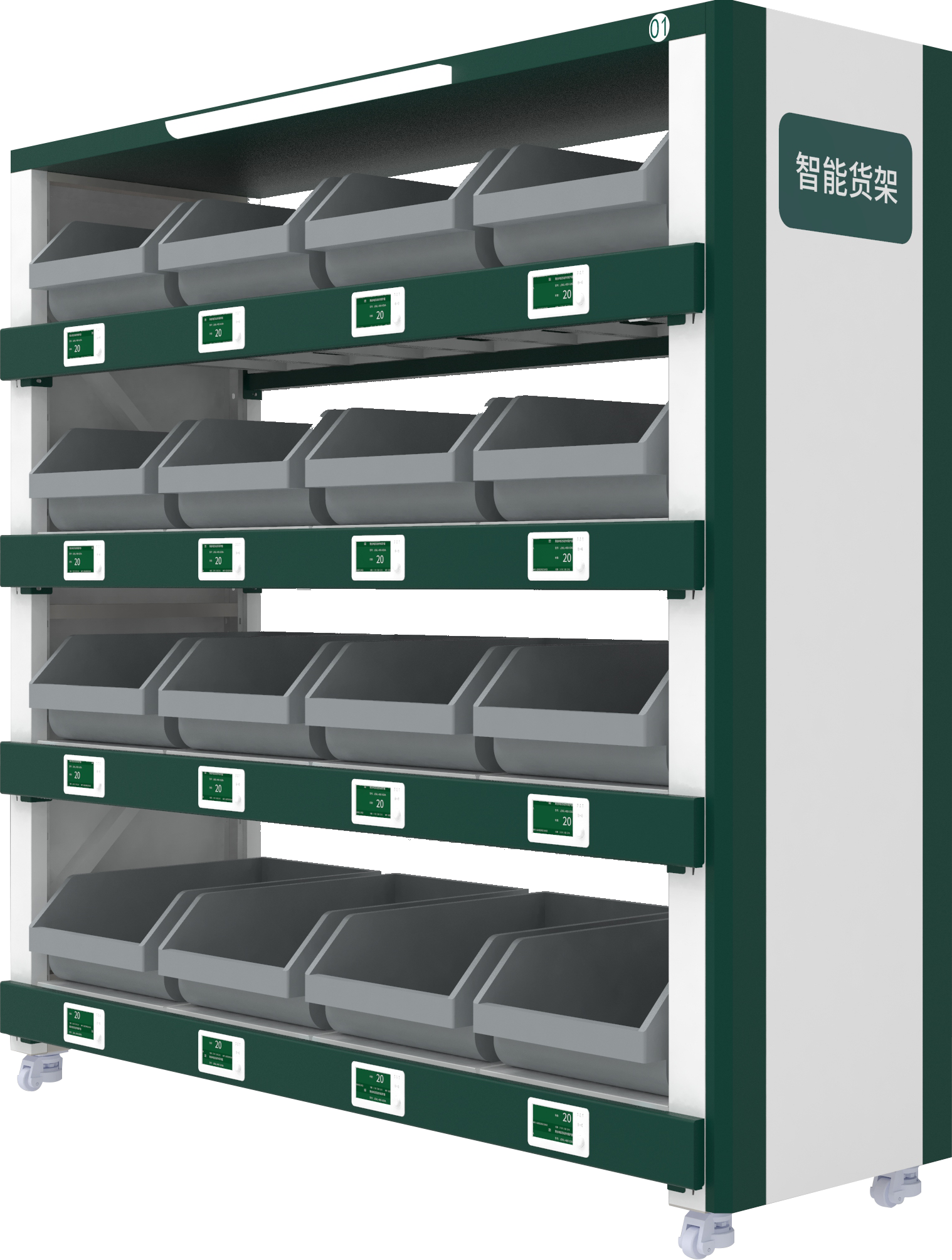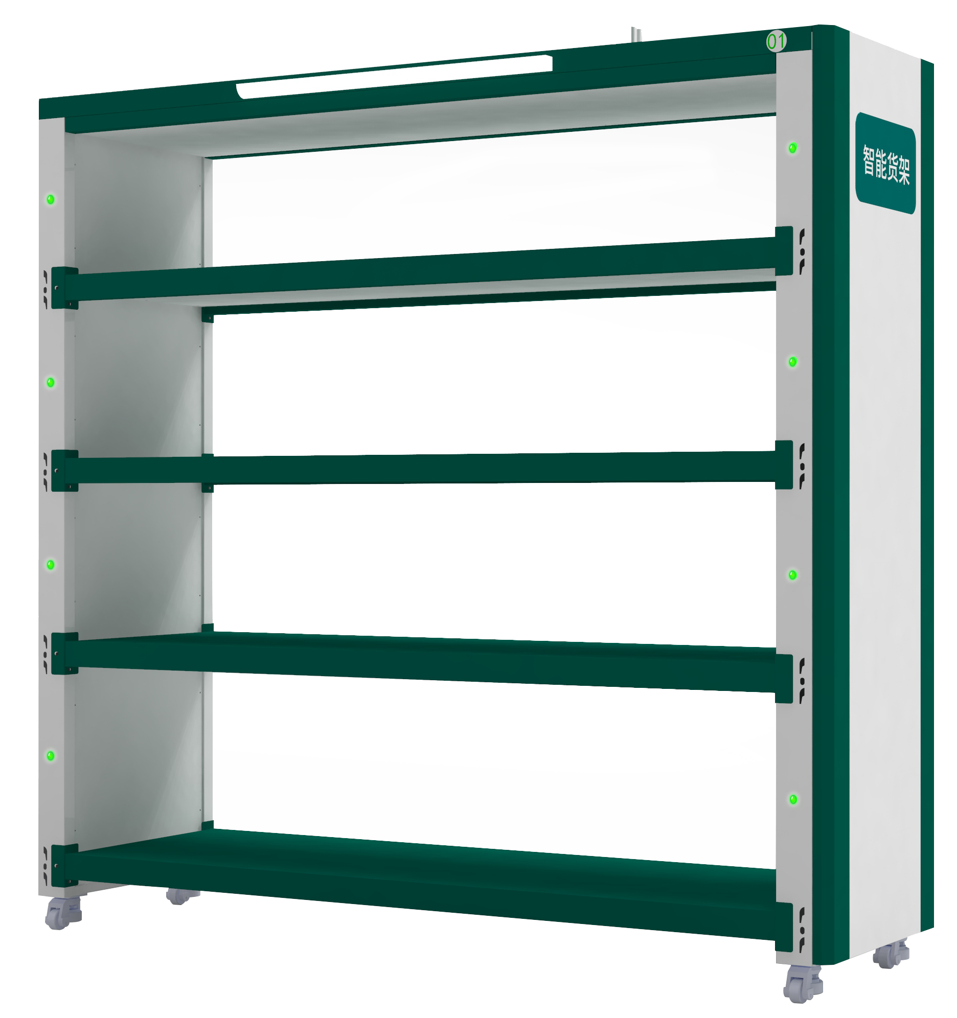 RFID智能貨架:用于管理尺寸較大的工具,通過RFID技術實現物品定位識別,通過指示燈實現存取操作精確引導。