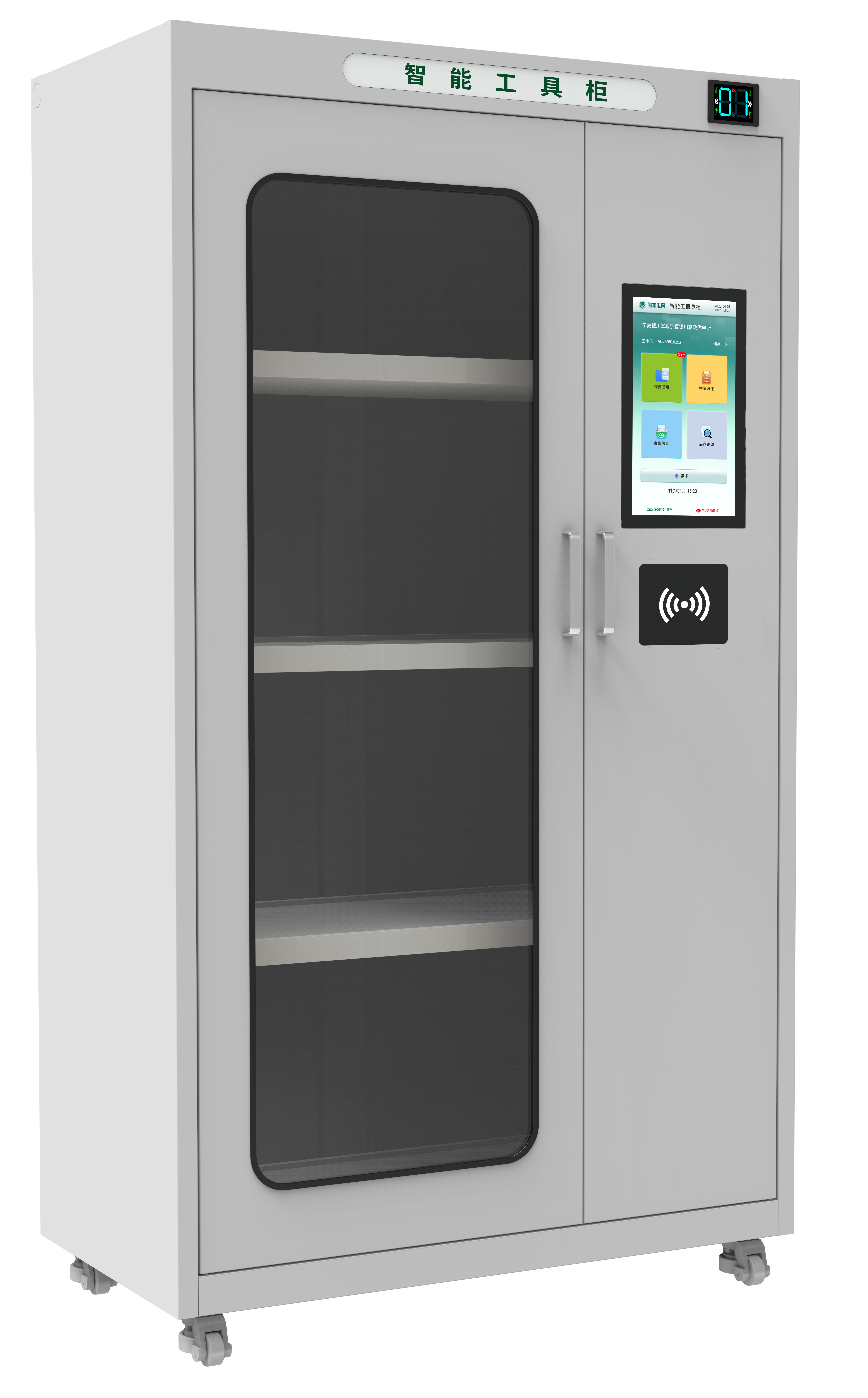 安全工具柜:針對安全類有絕緣需求的工具進行管理,主柜配有主屏操縱系統,結合使用RFID功能,快速判斷使用情況。