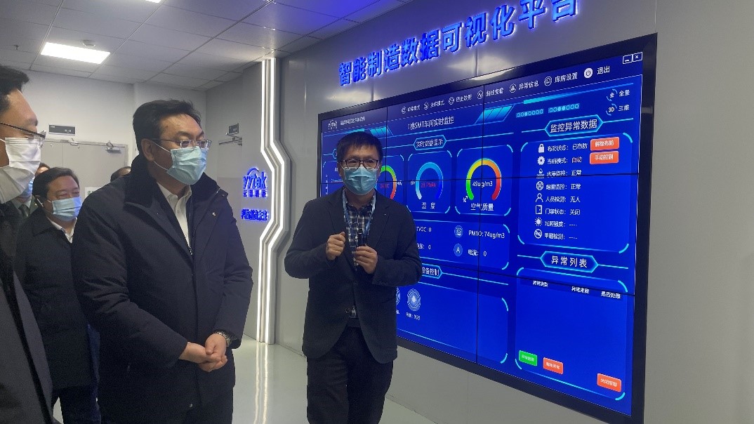 ? ? ? 隨后,朱書記等一行領導走進我司智能制造車間進行考察,高總重點介紹了公司SMT智能化生產(chǎn)線、“5G+AGV”搬運機器人場景應用等智能車間運行的情況。朱書記對公司的發(fā)展以及制造中心的智能化水平給予了充分的肯定,并鼓勵公司借力資本市場,繼續(xù)推進科技創(chuàng)新,實現(xiàn)產(chǎn)品的高價值、高顏值、高效率,促進云涌科技高質量發(fā)展。